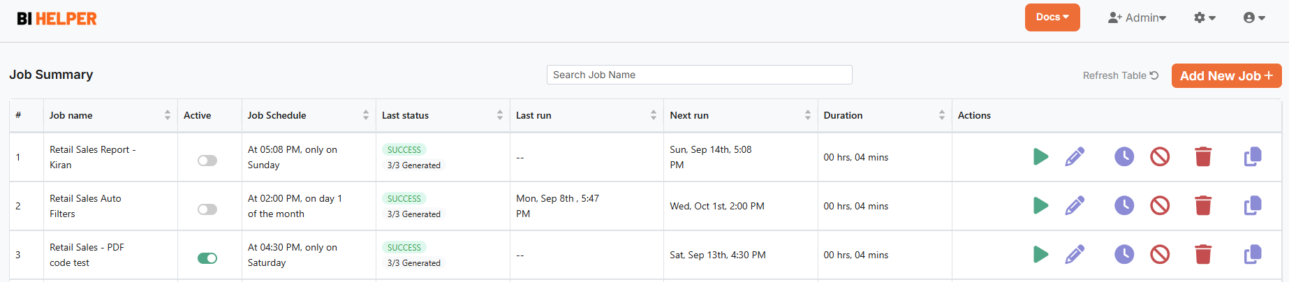 2. Once you sign in, BI Helper takes you to the Job Summary tab. Click on the Add New Job + button at the top right of the page.