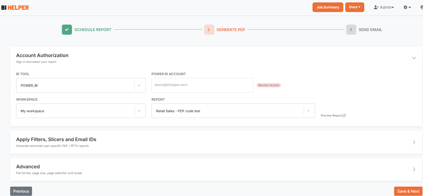 BI Helper is a SaaS application that automates the creation and distribution of PDF/ PPTX reports from Power BI. It enables businesses to apply slicers and filters to their Power BI reports, generate user-specific PDF/ PPTX files and share them with customers, employees and vendors.