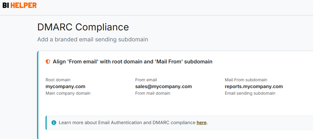 IMPORTANT: To ensure that your emails are delivered without being classified as spam or being blocked by recipient firewalls, please make your sender email DMARC compliant. Please read Docs > Email Authentication for an overview of the process. Then go to Settings > DMARC Compliance to add a sending subdomain and make your sender email DMARC compliant.